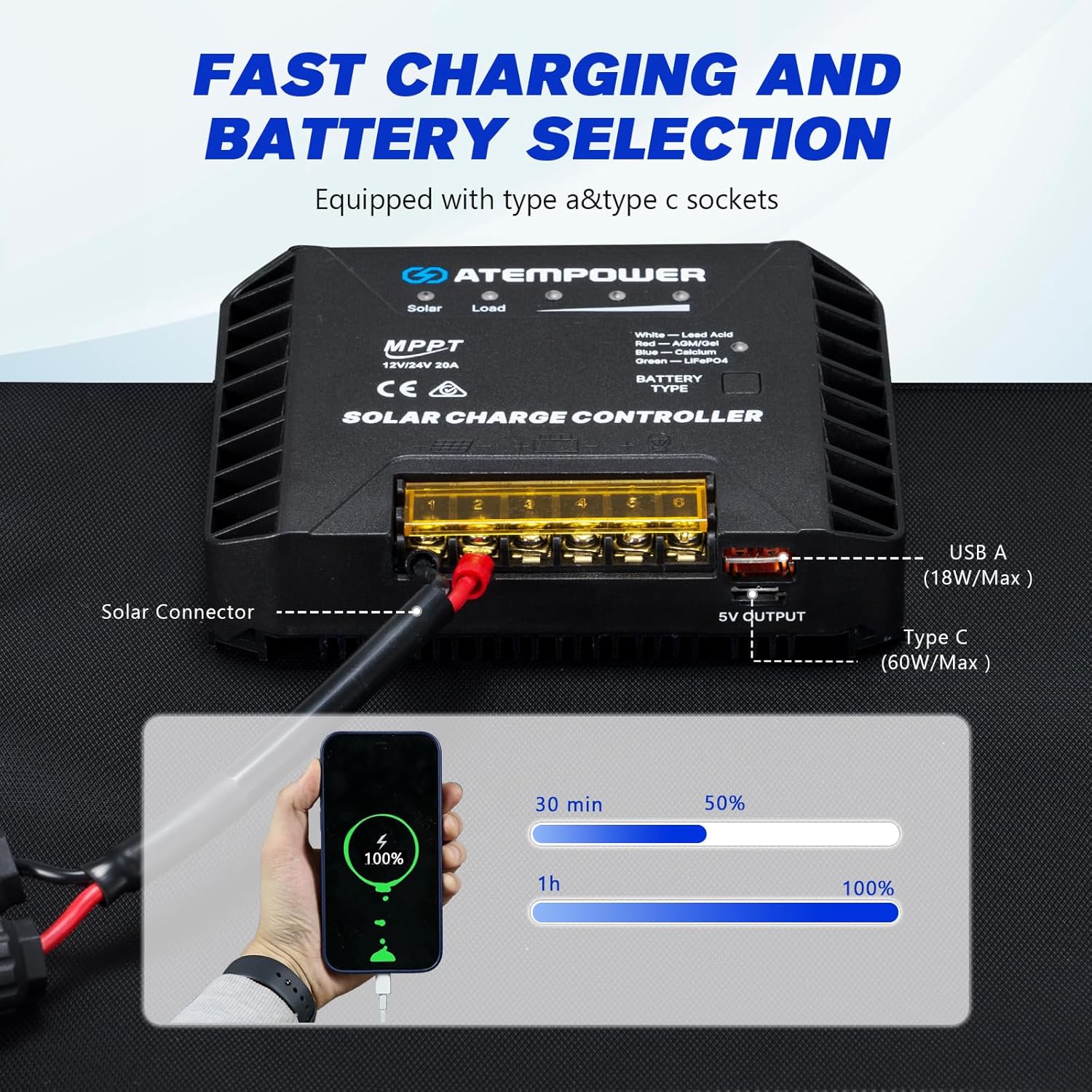 The MPPT charge controller keeps lithium batteries happy and fully juiced, and it plays nice with Lead Acid, AGM, GEL, Calcium, and LiFePO4 too. Plus, built-in USB ports let you charge phones, tablets, or that one Bluetooth speaker Bigfoot uses for his smooth jazz playlists. Reliable, portable, and beast-approved—this is the solar setup you want when the forest is your address.