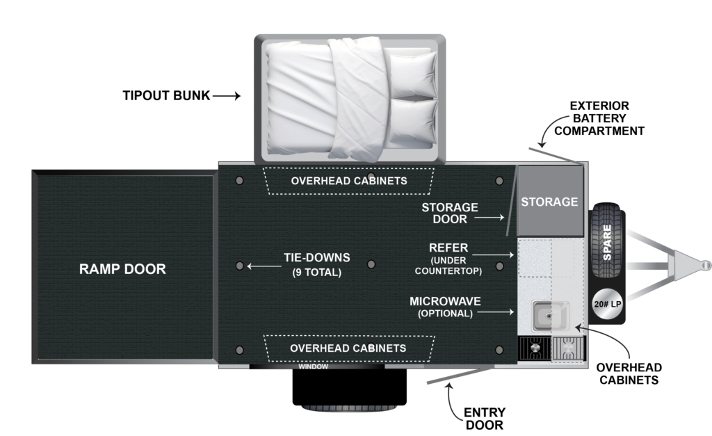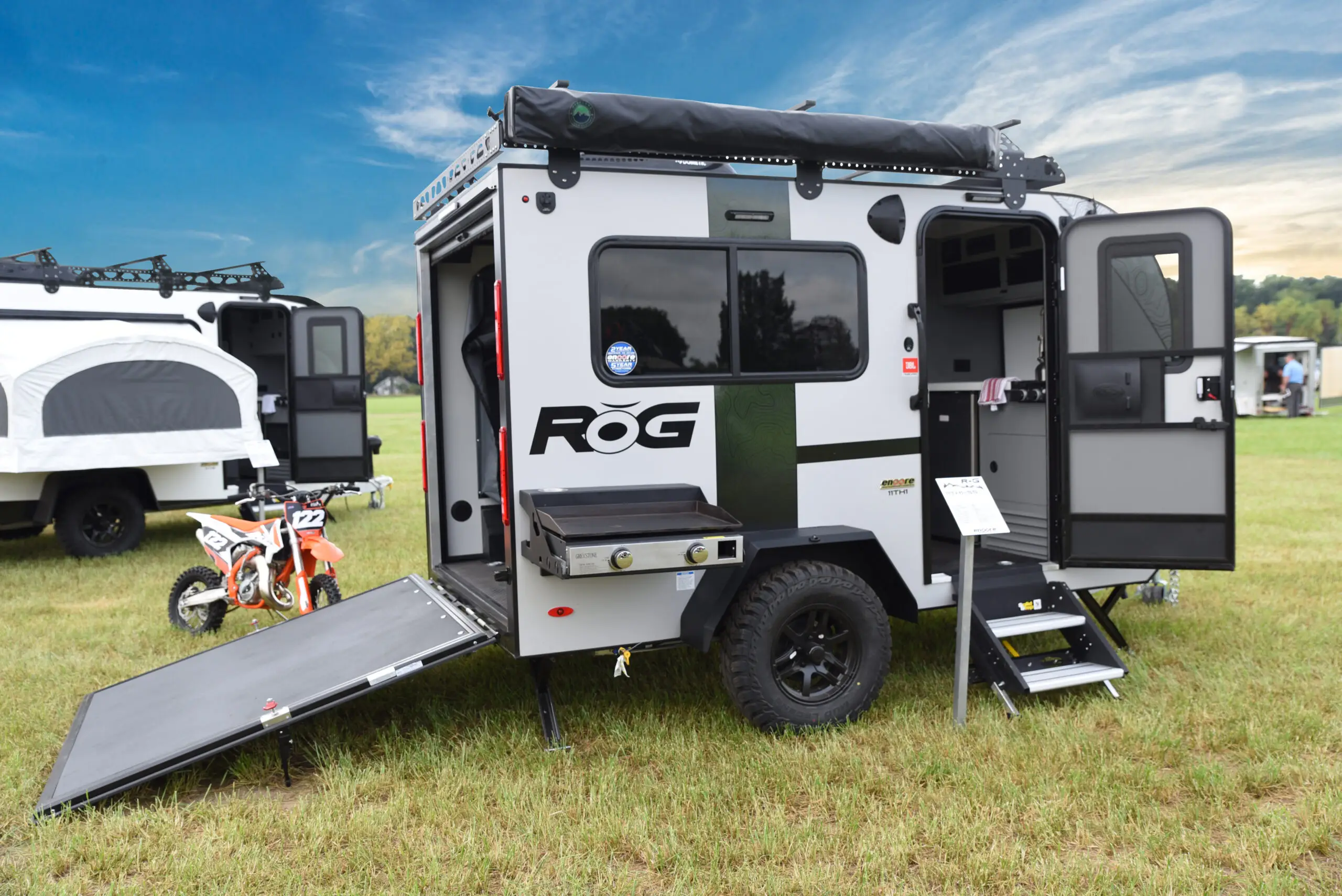 The RŎG 11TH Adventure Hauler is the perfect combination of compact size and big capability. Easy to tow with most mid-size SUVs, it’s built for those who want freedom and flexibility on every trip. Haul your motorcycle, ATV, or gear with ease—then set up the pop-out tent for comfortable sleeping under the stars. Whether you’re hitting the trails or escaping off-grid, the all-new RŎG 11TH is ready to go wherever adventure calls.