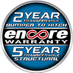 Every Encore RV is covered by a transferrable 2-Year Bumper to Hitch Warranty plus a 5-Year Structural Warranty. We don’t believe that our warranty is in place to cover the owner…it’s there to cover the camper we built. That’s why we offer one of the very few transferrable warranties in the industry. If you should ever sell your Encore RV the next owner can take full advantage of any remaining warranty at no additional cost to them or you. All they have to do is register the camper in their name with Encore RV through our online registration and they’re all set…it’s that easy.