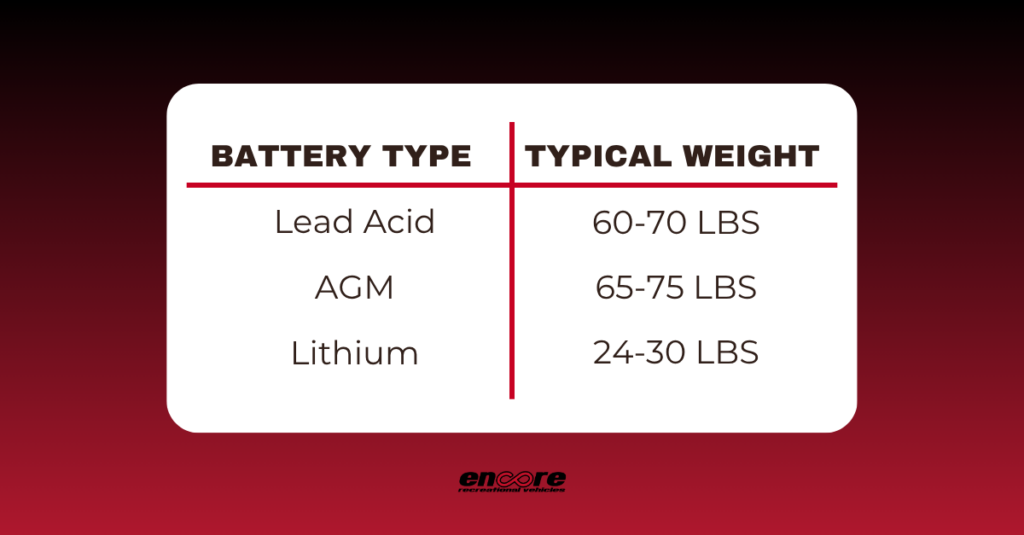 Lithium batteries are also dramatically lighter than traditional RV batteries.
